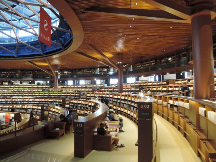 もしかすると、デジタル化する現代にあって図書館需要って低下しているのかもしれませんが、この図書館はまずデザインとして行ってみたくなります。そして間違いなく、ここで本を読みたくなります。本を探して歩き回りたくもなります。そして気に入った本を気に入った場所で読みたくなります。そんな楽しみにあふれていて、建築の力みたいなことを感じさせてくれます。