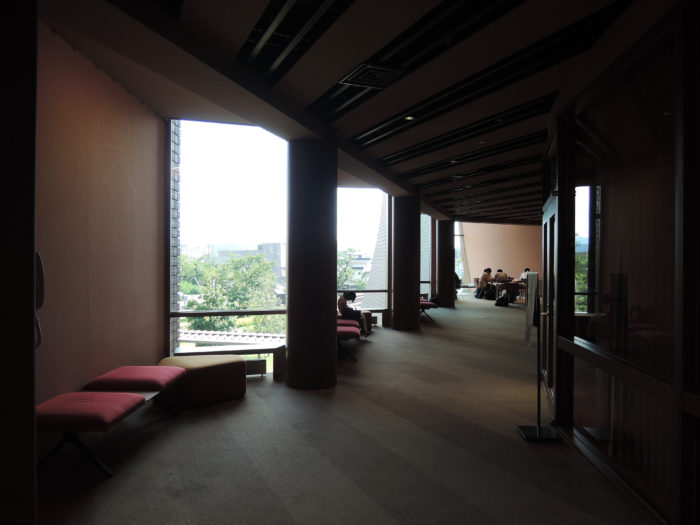 一方で、雁行された開口内部はどうなっているのかというと、円形空間から程よく切り離されて静けさのあるエリアになっています。練られた設計密度を感じます。